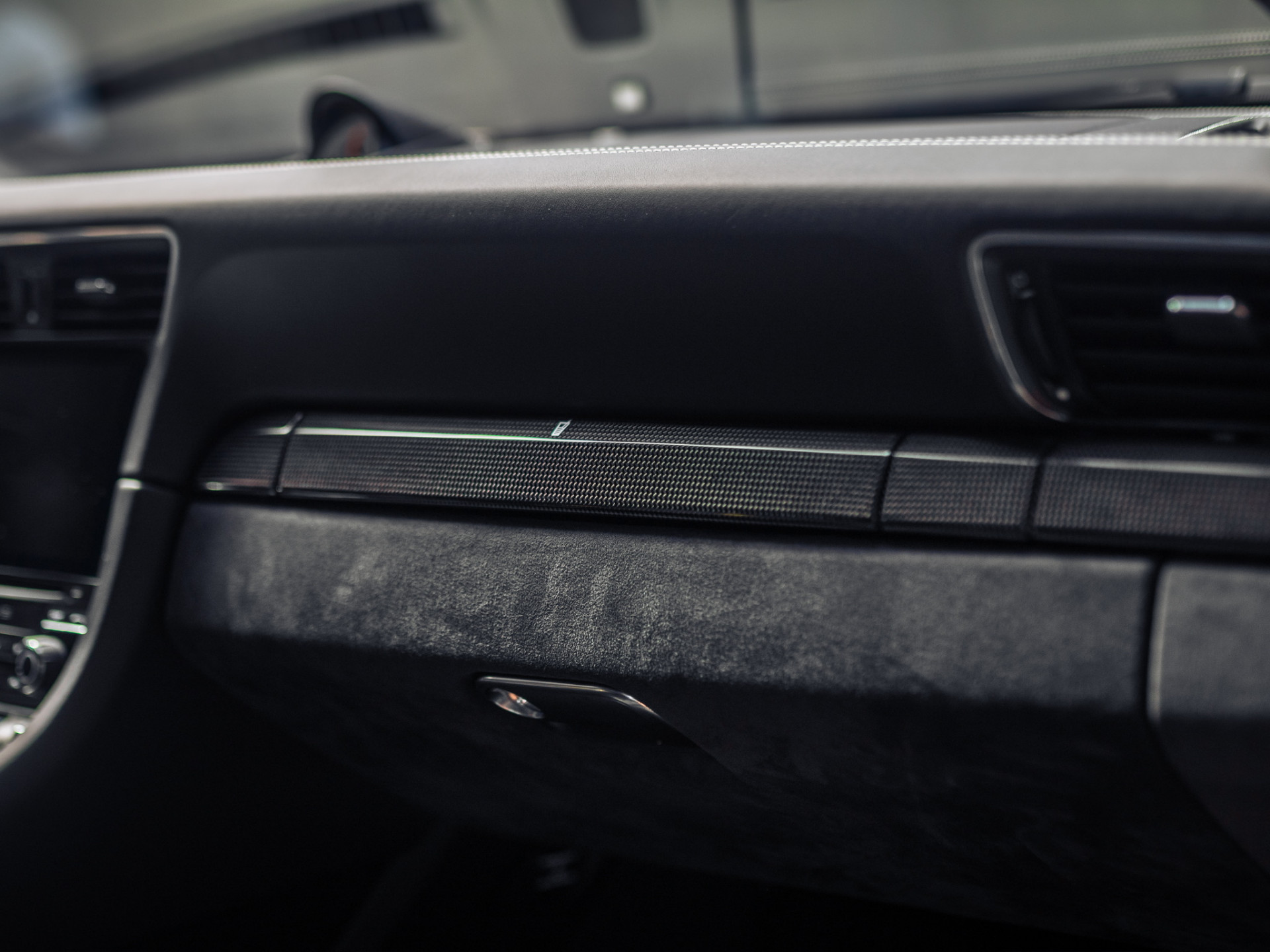– Deckel Ablagefach hinten Alcantara mit Schriftzug Porsche