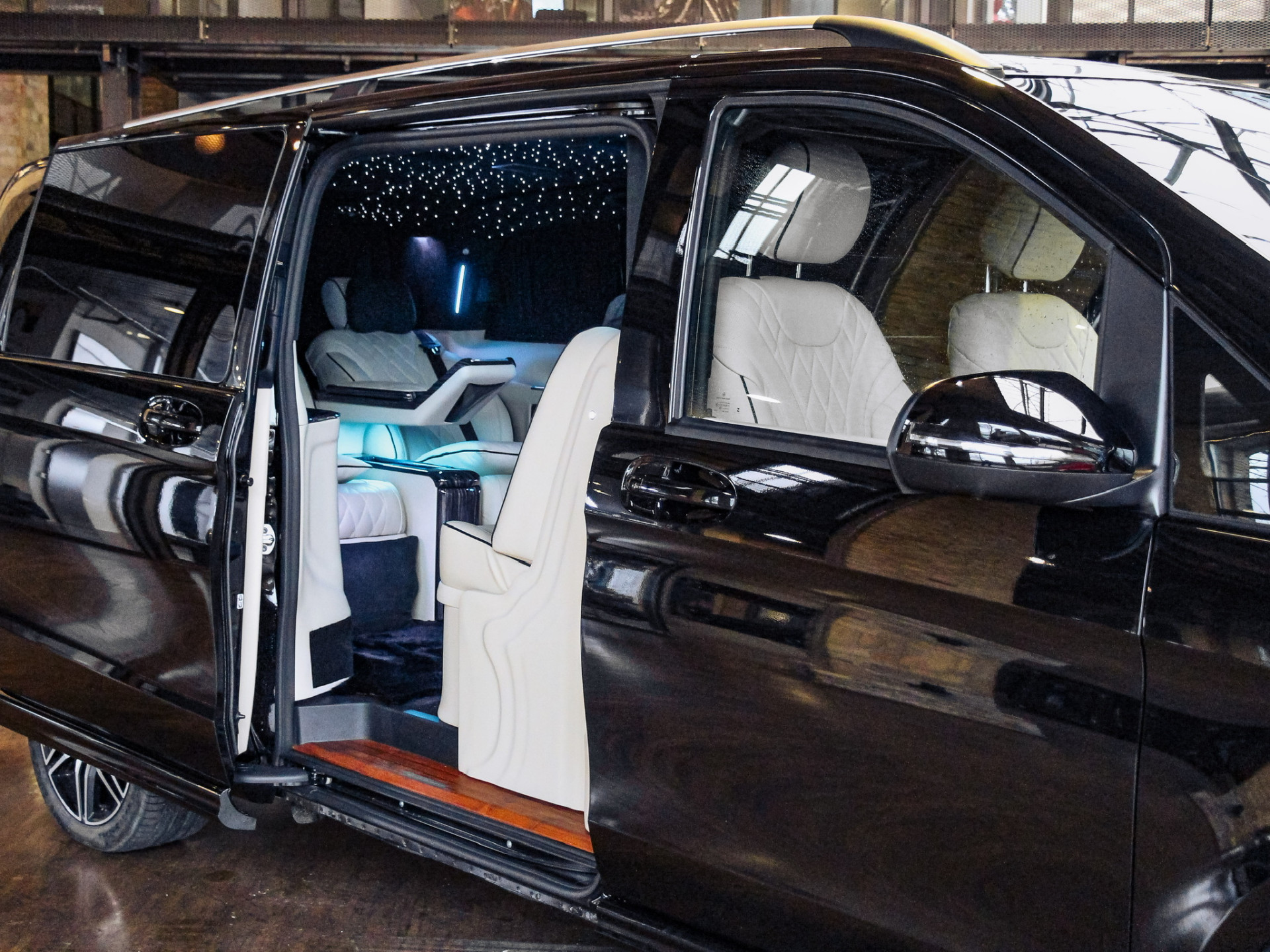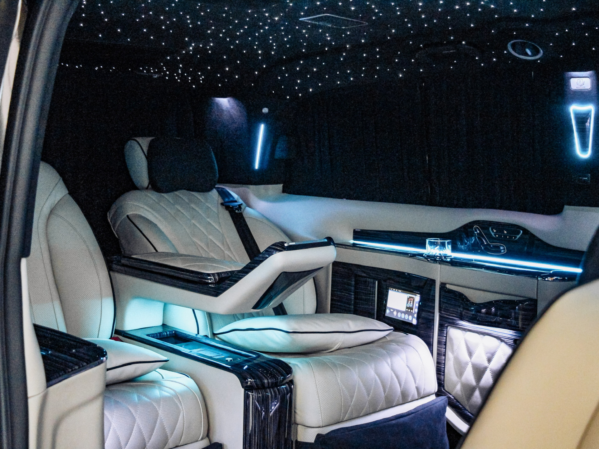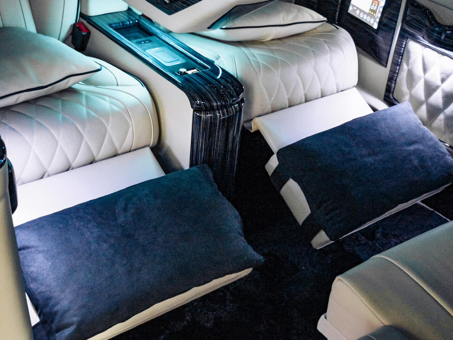 Wir freuen uns, Ihnen eine V-Klasse zu präsentieren zu dürfen, die es Ihnen ermöglicht so entspannt zu reisen wie in einem Privatjet. Außen gediegen unauffällig, innen hoch luxuriös! Neben elektrischen VIP Liegesitzen, die mit feinstem Nappaleder bespannt wurden, einem flauschigen Teppich und Echtholz-Einstiegsleisten, finden Sie im Innern ein umfangreiches Bord-Entertainment System (inkl. PlayStation5, mehreren Bildschirmen und Highend Cinema System Harman Kardon 5.1), eine Kaffeemaschine, Humidor und viele weitere Extras. Bei weiteren Fragen stehen wir Ihnen gerne jederzeit zur Verfügung!