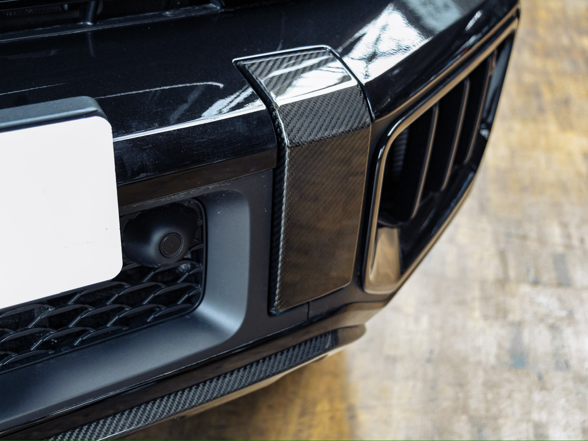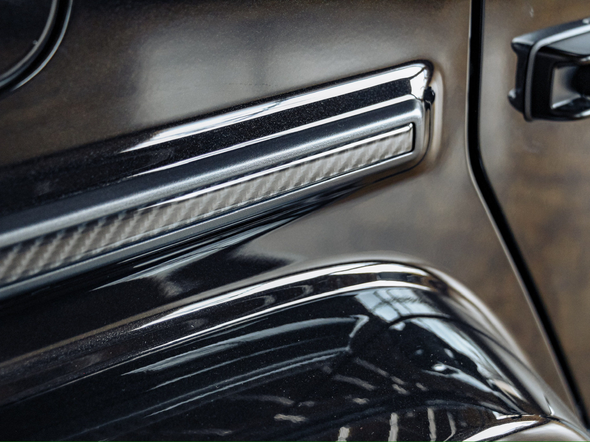 CE4 Außenschutzleisten mit Ziereinlagen in Carbon-Design RR4 Ersatzradring lackiert in Obsidianschwarz